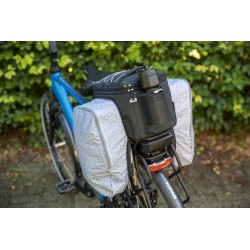 Le Sports Trunkbag est un sac en bandoulière très pratique qui convient à tous les types de porte-bagages. Vous fixez le sac sur le porte-bagages au moyen de 4 sangles dotées d’une attache velcro. Il s’accompagne d’une housse de pluie et d’éléments réfléchissants sur 3 côtés. Il est possible d’agrandir le compartiment principal, et le sac est muni de 2 sacs déroulants sur le côté. Le sac contient également 3 compartiments intérieurs, une bandoulière amovible et un porte-bidon à l’arrière.