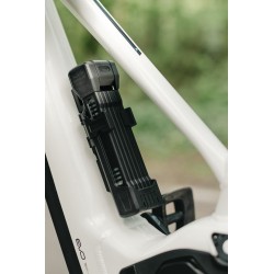 Pour le transport, tu plies l'antivol à une taille compacte, comme un mètre pliant. Ensuite, tu le ranges dans le support d’antivol fourni, qui peut être facilement monté sur le cadre du vélo. Vraiment pratique : Le support comprend un compartiment pour ranger la clé, et l'antivol s'enclenche facilement dans le support en exerçant une pression sur les barres - rapidement et sans se coincer les doigts. Le support du Bordo 6200K/120 offre également un compartiment de rangement pour un AirTag* ou un SmartTag**. Ceux-ci permettent de localiser l'antivol ou le vélo.