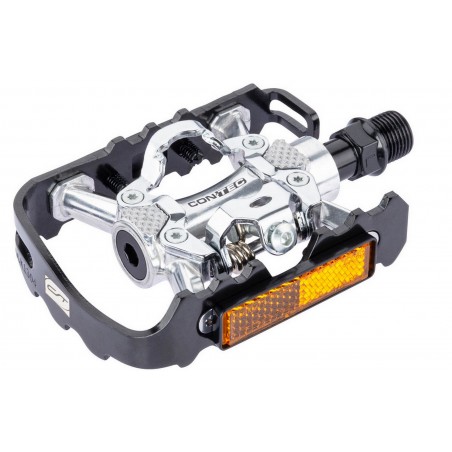 Pédale automatique avec cage, corps et cage en aluminium, force de déclenchement ajustable, liberté de mouvement latérale de 4°, s'enclenche et se déclenche facilement également aux mauvaises conditions et avec semelles sales, axe en CrMo, roulement industriel étanche, dimensions : 105 x 66 mm, 366 g